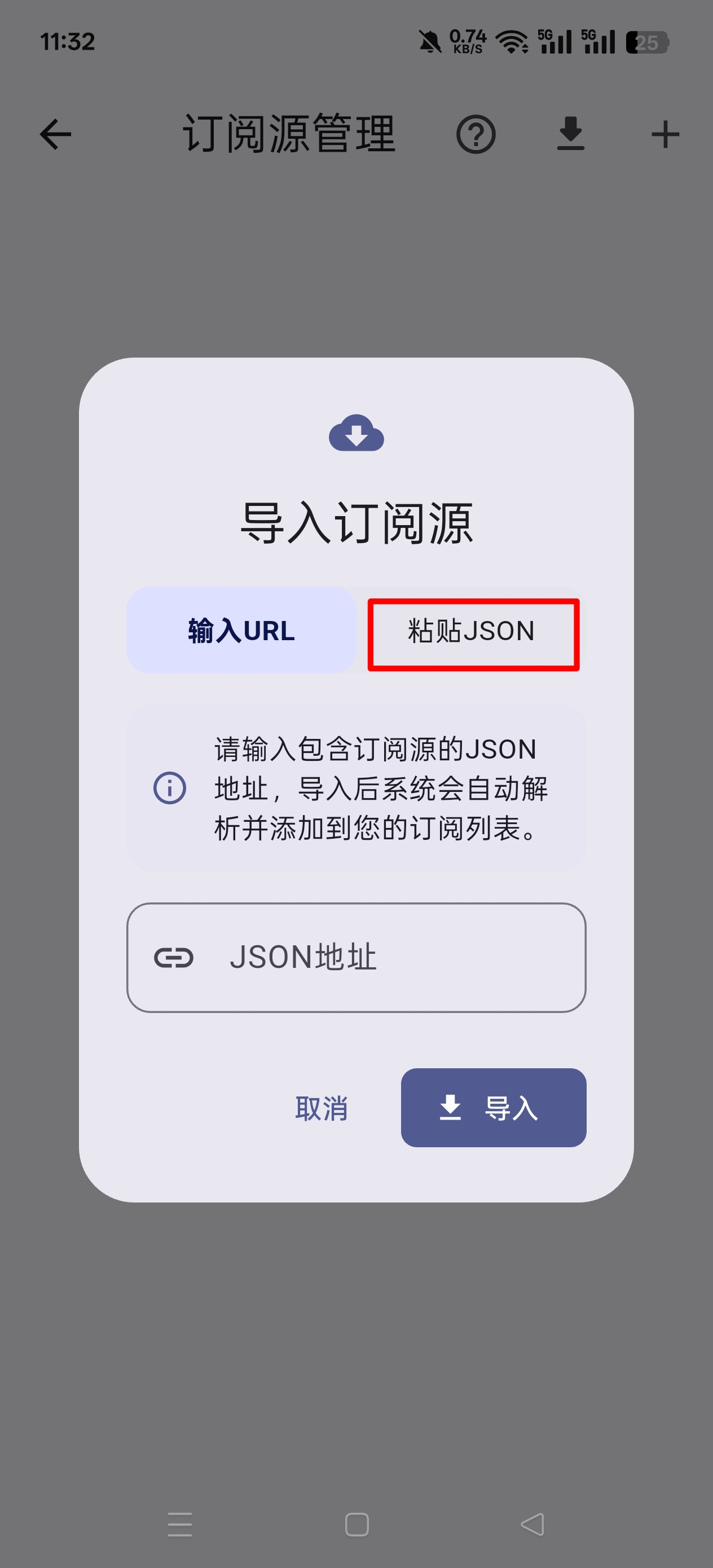 1. 复制粘贴以下订阅源地址:https://docs.autooj.cn/assets/source.json